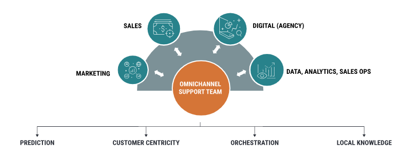 To succeed with omnichannel, it’s crucial that a company’s entire commercial organization buys in and actively works toward common goals. This company succeeded in securing alignment across the marketing, sales, sales operations, and data and analytics teams.As the largest and most impactful arm of a company’s commercial operations, the sales force is especially important in driving forward omnichannel orchestration. This company built and developed a sales team that was willing to shift behavior based on analytics-derived insights, proactively share on-the-ground insights to inform the omnichannel effort, and embrace the vision of cohesive interaction with customers across in-person and digital channels.